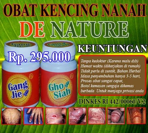 - Obat Kencing Nanah Ampuh Gang Jie dan Gho Siah merupakan produk herbal dari De Nature Indonesia yang telah terbukti khasiat dan manfaatnya untuk menyembuhkan penyakit kencing nanah dengan cepat dan aman tanpa efek samping. Proses penyembuhan menggunakan obat herbal ini adalah 3 sampai dengan 5 hari serta dari hari ke 5 sampai dengan ke 10 merupakan masa penuntasan atau penyembuhannya. Produk dari De Nature Indonesia semuanya telah terdaftar resmi di Departement Kesehatan (DEPKES) dan juga telah mengantongi izin edar dari BPOM RI (Badan Pengawasan Obat dan Makanan). Sehingga, anda tidak perlu khawatir akan efek samping yang berbahaya apabila mengkonsumsi obat herbal dari kami. Semua obat terbuat dari 100% bahan alami yang diolah secara modern dengan riset dan penelitian dari para Dokter dan juga Ahli Herbal De Nature Indonesia.